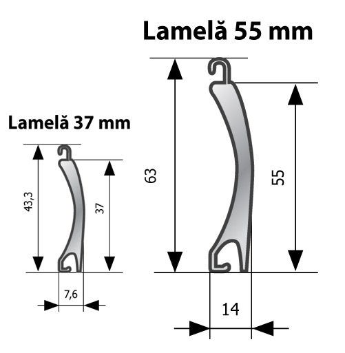 | Lamelă | Dimensiune casetă | Dimensiune ghidaj | Lăţime maximă |