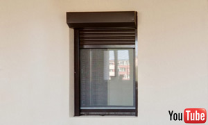 Rulou pentru ferestră aplicat - OUTBOX cu plasă de insecte integrată, cu casetă maro 45 ° actionare electrică prin telecomandă